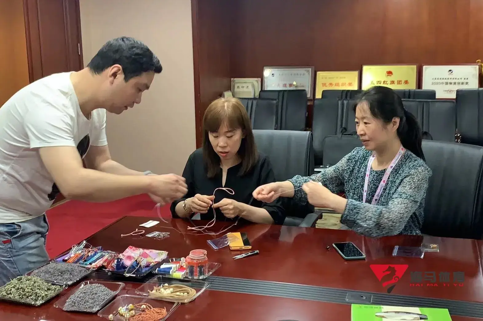 制作前,星空体育的手工老师首先介绍了端午的习俗以及端午节制作香囊与五彩绳的来历,让大家在活动前了解端午的民俗文化,手工老师将精心准备的有着美好寓意的五色彩绳、色彩绚丽的香包袋以及清香的艾草薰衣草,送到职员手中,携手制作香包和五彩绳。